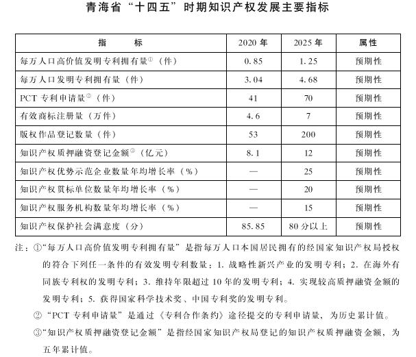 青海省“十四五”知识产权保护和运用规划