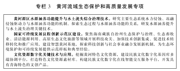 落实好黄河流域生态保护和高质量发展战略部署,布局科技创新平台,开展黄河源头、青藏高原生态环境等重大问题研究、科学试验和技术攻关,抓好源头保护及流域治理,促进文化保护和传承,推动流域水资源节约集约高效利用。