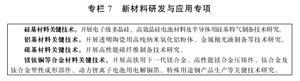 开展硅基、铝基、镁基、碳基等先进材料制备关键技术研发,实现新材料产业集群化、高端化发展。