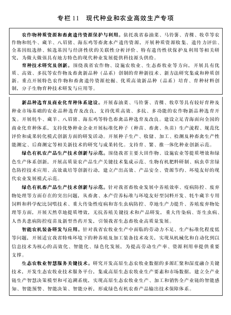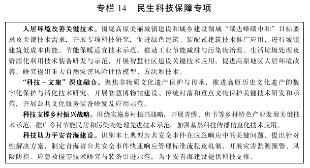 青海省“十四五”科技创新规划