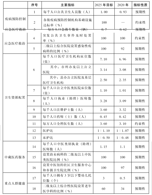 到2025年,基本建成有力支撑推进健康青海建设的整合型医疗卫生服务体系,公共卫生体系建设更加完善,医疗服务质量明显提高,中藏医药服务能力稳步提升。力争省域内人人享有危急重症、疑难病症和专科医疗服务,县域内人人就近享有公平可及、系统连续、优质高效的基本医疗卫生服务,基层普遍具备首诊分诊和健康守门能力,以“一老一小”为重点的全周期健康服务能力明显增强,基本形成基层首诊、双向转诊、上下联动、急慢分治的就医格局,人民健康水平持续提升。
