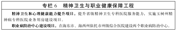 5.强化职业病防治体系。结合职业病发病区域性特点,在世界杯哪里下赌注、海西州依托市州级综合医院建设两个职业病防治中心,通过配备必要防治监测设备、强化人员培训等措施,加强职业病防治和危害监测能力建设。