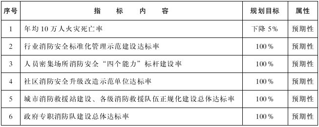 ———消防治理能力大幅提升。全面完成消防执法改革任务,与国家治理体系和治理能力现代化相适应的法律法规体系、消防责任体系更加健全,新型消防监管机制完善运行,基层消防治理更加简约高效,风险隐患整治实现差异精准,公共消防设施实现城乡全覆盖、均等化,社会消防安全环境不断改善。大力实施全民消防安全素质提升工程,着力提高全民消防法治观念和消防安全意识,建立舆论引导、教育渗透、文化传播、全民参与的社会化消防宣传教育新格局。