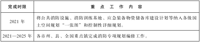 总体目标:到2025年,基本建成“统一领导、权责一致、权威高效”的应急救援能力体系,基本构建起与全面建成小康社会相适应的现代化消防治理体系和治理能力,防范化解消防安全风险和应对处置灾害事故的能力显著提升,火灾形势持续平稳,重特大火灾事故有效遏制,为经济社会高质量发展和人民美好生活提供有力的消防安全保障。