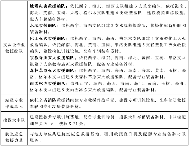 ———应急救援力量建设迈出重大步伐。对照“全灾种、大应急”的职能需要,科学研判,制定《青海省消防救援总队应急救援作战指挥力量体系建设指导意见》(青消〔2020〕179号),明确8类灾害事故灭火救援作战力量编成标准,先后组建18支高层、地下、大跨度大空间、石油化工、公路隧道灭火救援专业队,32支地质灾害、山岳、水域救援专业队,成立省级综合应急救援机动支队和抗洪抢险救援队,有效应对了甘河化工厂火灾、湟源县工业园厂房火灾等灾害事故,圆满完成了门源64级地震、西宁“1·13”路面塌陷、玛沁滑坡等应急救援任务。省财政厅等五部门联合印发《青海省政府专职消防队伍建设管理办法》(青消〔2020〕81号),明确保障标准,提升薪资待遇,有效解决人员招不来、留不住的瓶颈性问题。