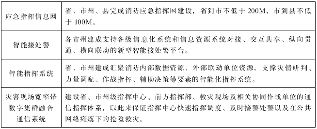 六、应急通信保障建设提升工程。完成消防指挥调度网至应急指挥信息骨干网的整体接入,实现互为备份、上下贯通,将指挥调度末端逐步延伸至多种形式消防救援队伍。沿用公安350M无线通信系统覆盖城市通信,以公网无线通信为补充,利用应急370M频率,推进应急指挥宽窄带无线通信网建设,保障无线通信网正常运转。将消防“物联网”接入消防智能接处警和智能指挥系统。