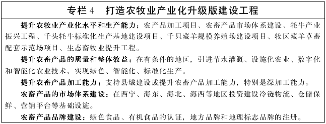 培育壮大现代农牧业。支持实施一批绿色、高效种养殖特色产业项目,共推青海特色现代农牧业发展,协力打造绿色有机农畜产品输出地。发挥苏青两省特色产业比较优势,重点支持我省特色优势产业适度规模化发展。加强特色农畜产品生产加工流通合作,鼓励引导江苏省农业产业化龙头企业在青海省建设生产加工基地,配套形成更加完善的交通物流体系。依托江苏省国际国内农畜产品贸易洽谈平合和电子商务平台,加大青海特色优质产品推介力度。鼓励加强研发合作,推动研发成果转移转化。