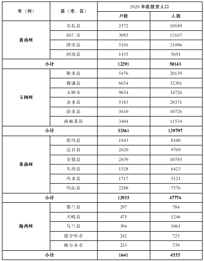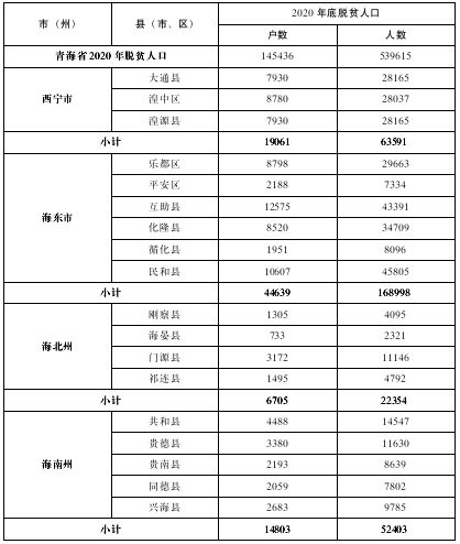 脱贫摘帽不是终点,而是新生活、新奋斗的起点。党的十八大以来,在习近平新时代中国特色社会主义思想的指引下,在党中央、国务院的坚强领导下,省委、省政府团结带领全省广大干部群众,坚持精准扶贫基本方略,奋力拼搏,攻坚克难,如期全面打赢了脱贫攻坚战。截至2020年底,42个贫困县全部摘帽、1622个贫困村全部脱贫退出、5396万贫困人口全部脱贫,绝对贫困和区域性整体贫困得到历史性解决,“三保障”质量水平明显提升,“三保障”及饮水安全突出问题得到消除;脱贫人口收入大幅度提高,自主脱贫能力稳步增强;脱贫地区生产生活条件明显改善,经济社会发展明显加快,实现了青海同全国一道全面建成小康社会的目标。