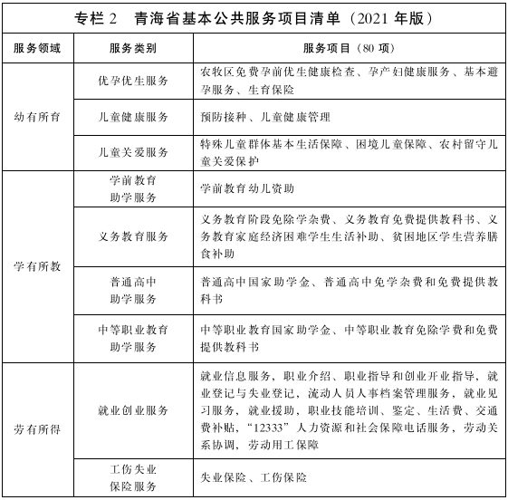 公共服务体系逐步健全。《青海省“十三五”基本公共服务均等化规划》深入实施,以基本公共服务清单为核心,以促进区域间、城乡间、人群间基本公共服务均等化为主线,以各领域重点任务、保障工程为依托的基本公共服务制度建立健全。全省75%以上支出投入民生事业,基本公共服务项目和标准全面落实,公共服务资源持续向农村牧区、贫困地区和困难群众倾斜,城乡区域间基本公共服务差距不断缩小。户籍制度改革持续深化,居住证制度有效落实,进城落户农牧业转移人口及其他常住人口合法权益得到切实保障。