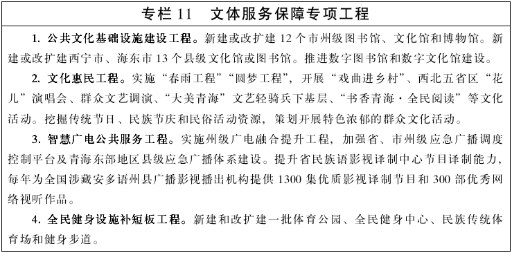 完善广播电视公共服务体系。加强广播电视基础设施建设,提升基层广播电视播出机构服务能力。实施州级广电融合提升工程,强化广电媒体融合发展能力。增强少数民族语言节目制作、译制和传播能力,加强涉农涉牧节目供给。实施民族地区有线高清交互数字电视机顶盒推广普及项目。健全数字广播电视户户通和应急广播体系,持续开展政府购买直播卫星接收设施维护服务。