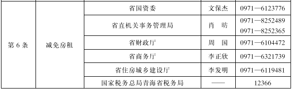 六、减免房租。被列为省内疫情中高风险地区所在的县级行政区域内的小微企业和个体工商户承租国有房屋,2022年免除6个月租金,其他地区免除3个月租金。对因落实疫情期间房租减免政策而造成生存困难的省属国有企业,经核定后给予一定比例补贴(牵头单位:省国资委、省直机关事务管理局,配合单位:省财政厅、省商务厅及其他履行国有企业出资人职责的有关部门)。鼓励各地统筹各类资金,对承租非国有房屋的服务业小微企业和个体工商户给予适当帮扶。鼓励非国有房屋租赁主体在平等协商的基础上合理分担疫情带来的损失(牵头单位:各市州人民政府)。对减免租金的非国有房屋业主,缴纳房产税、城镇土地使用税确有困难的纳税人,根据法律法规规定和地方实际,报请省政府同意后减免(牵头单位:国家税务总局青海省税务局,配合单位:省财政厅)。因减免租金影响国有企业业绩的,在考核中根据实际情况予以认可(牵头单位:省国资委)。