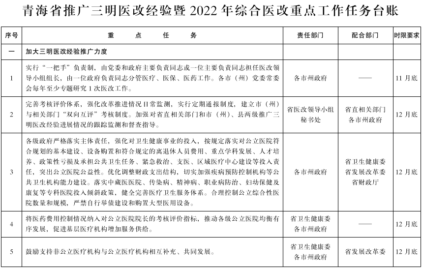 附件:青海省推广三明医改经验暨2022年综合医改重点工作任务台账