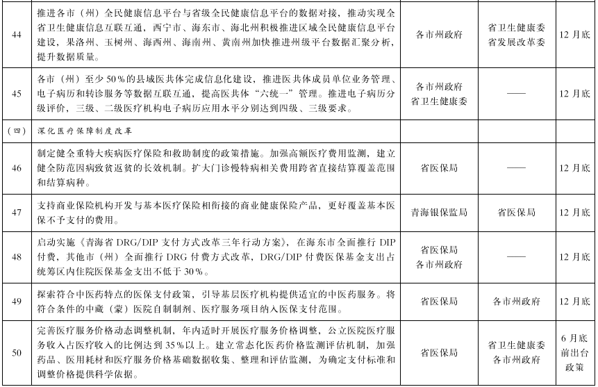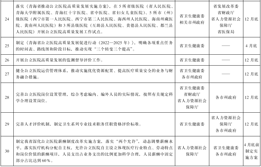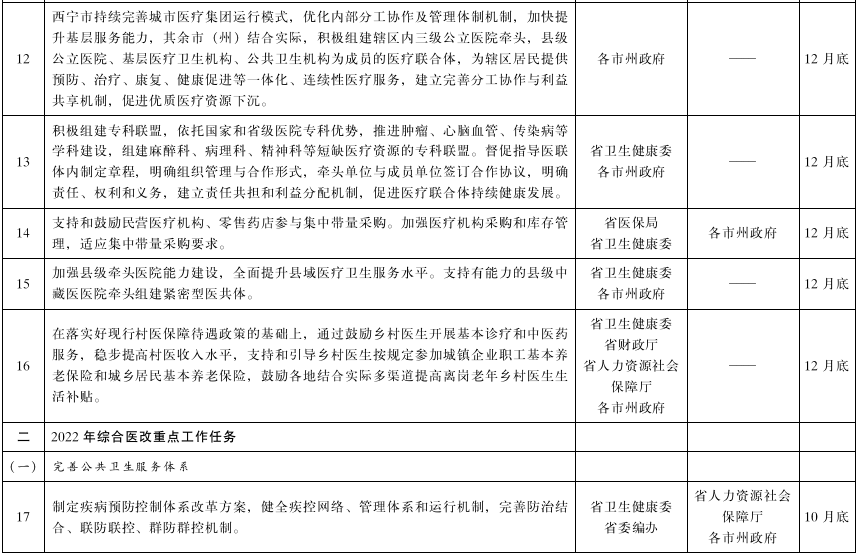 青海省2022年综合医改重点工作任务