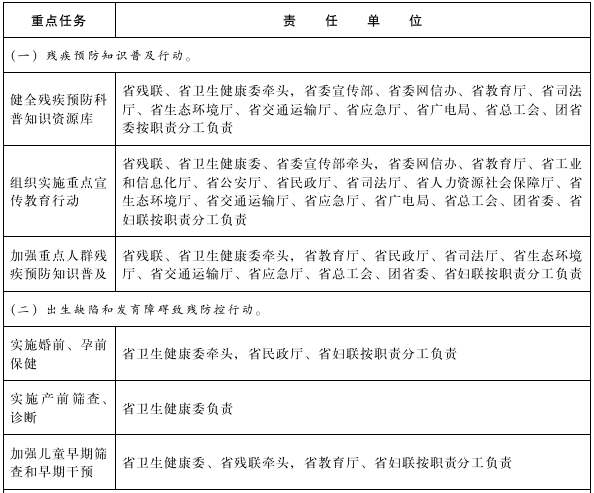 残疾预防行动计划任务分工