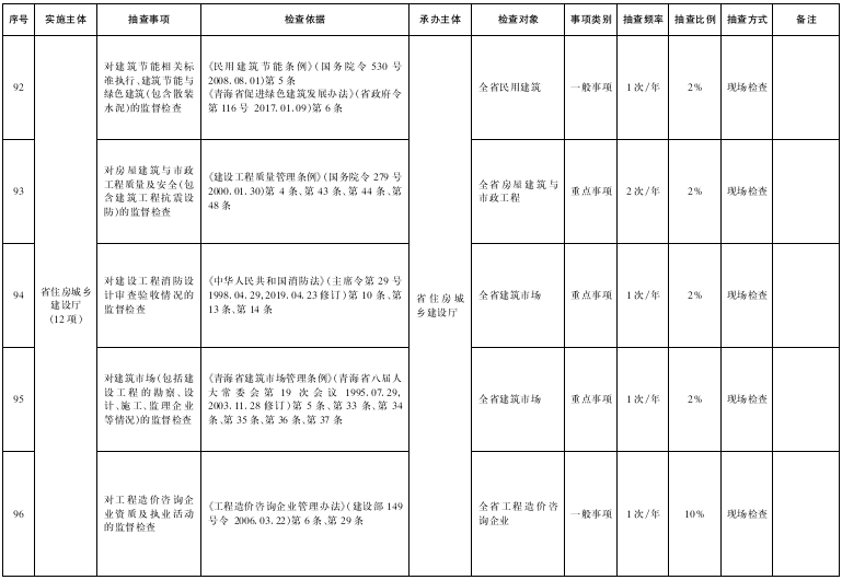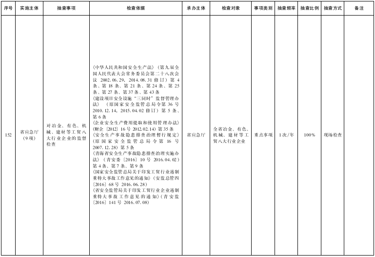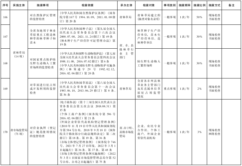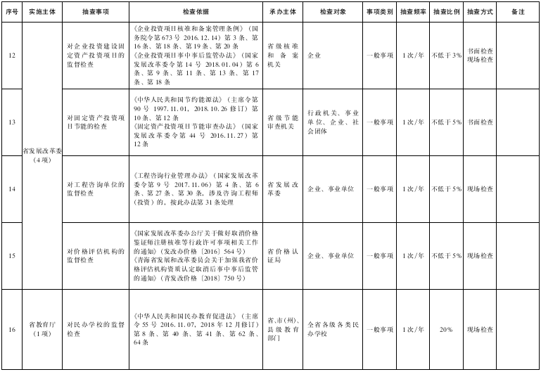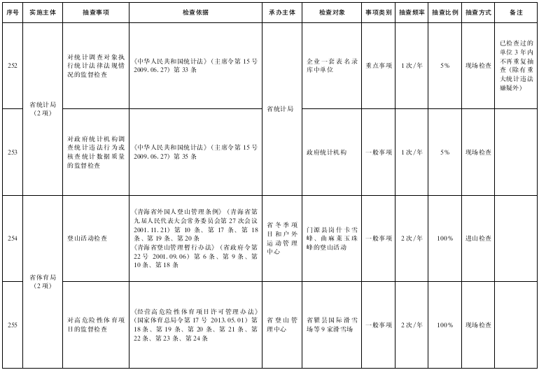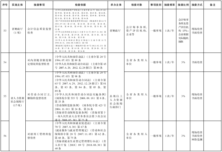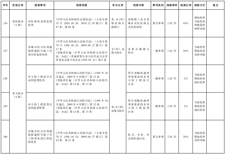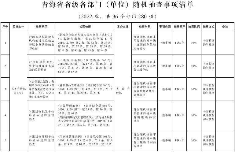 附件:青海省省级各部门(单位)随机抽查事项清单(2022版,共36个部门280项)