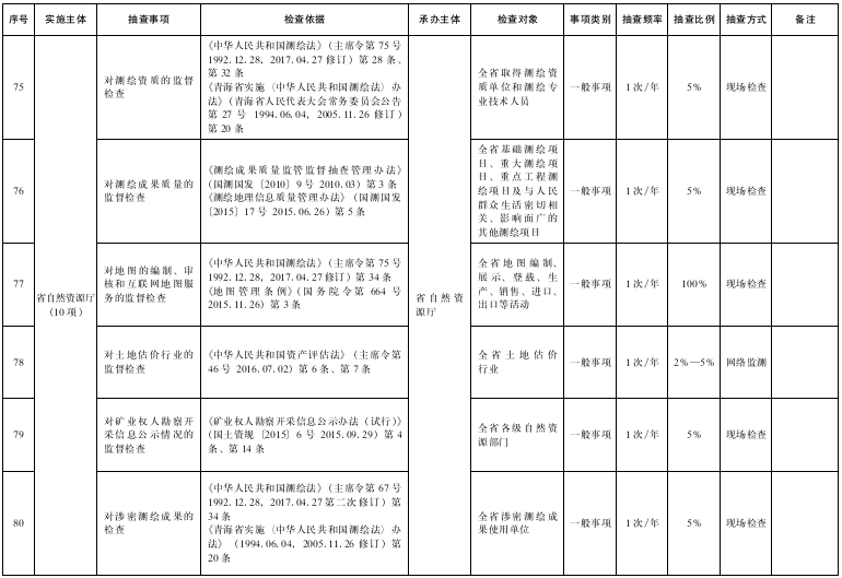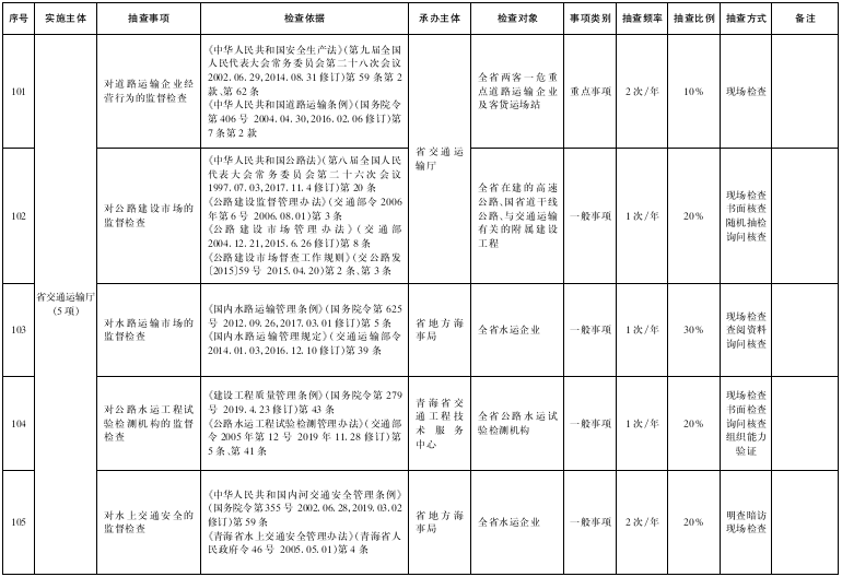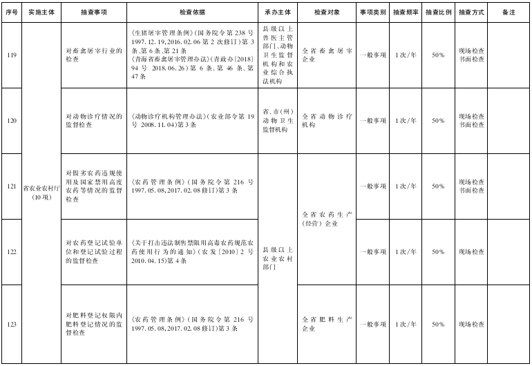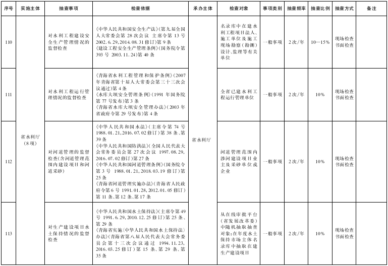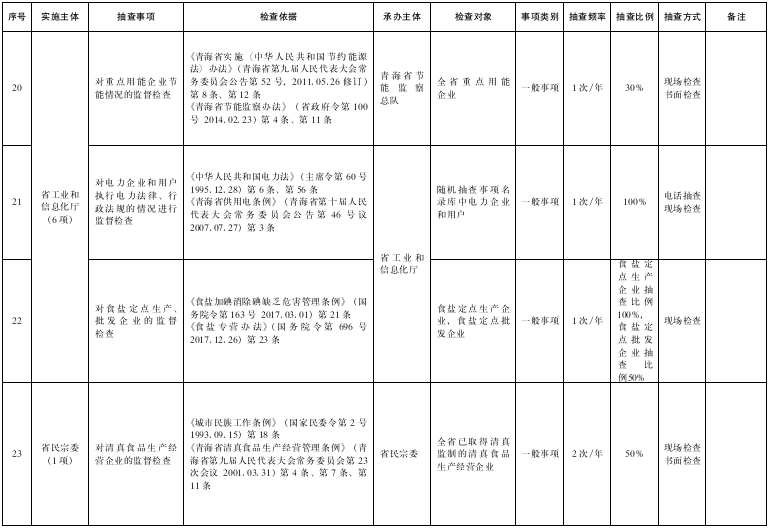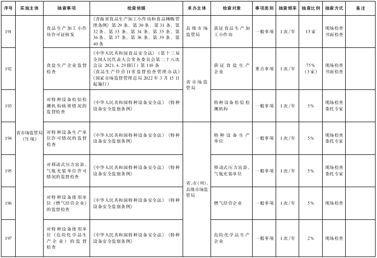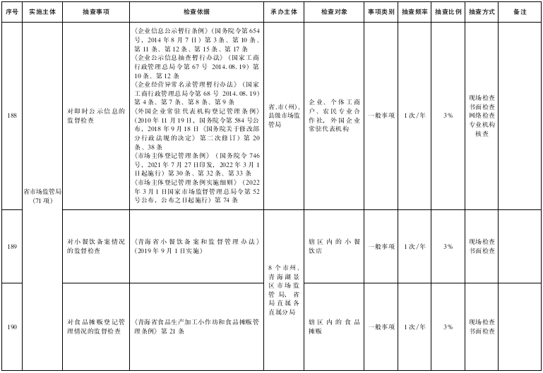 为认真落实《国务院关于在市场监管领域全面推行部门联合“双随机、一公开”监管的意见》(国发〔2019〕5号)和《青海省人民政府关于印发青海省市场监管领域全面推行部门联合“双随机、一公开”监管实施办法的通知》(青政〔2020〕43号)有关要求,加强部门双随机抽查检查事项清单动态管理,经省政府同意,现将《青海省省级各部门(单位)“双随机、一公开”抽查事项清单(2022版)》印发给你们,请认真抓好落实。