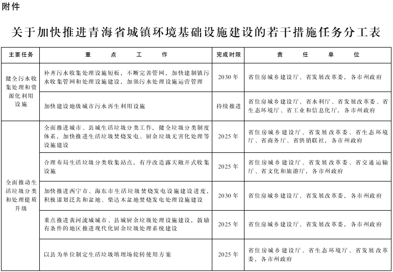附件:关于加快推进青海省城镇环境基础设施建设的若干措施任务分工表