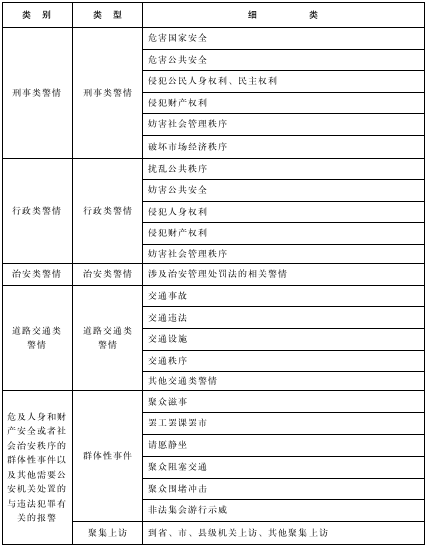 (1)刑事类、治安类、道路交通类警情、案(事)件。