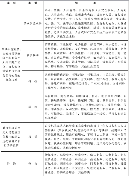 (9)其他需要公安机关处置的紧急求助事项、有关违法犯罪的报警等。