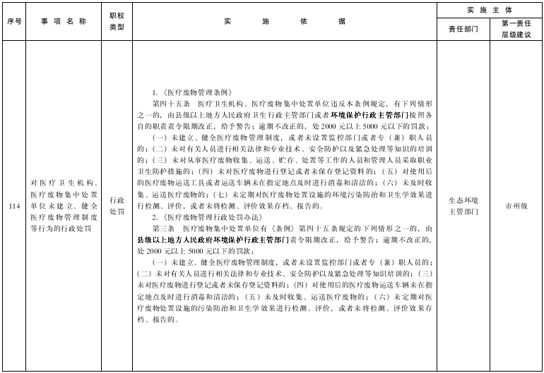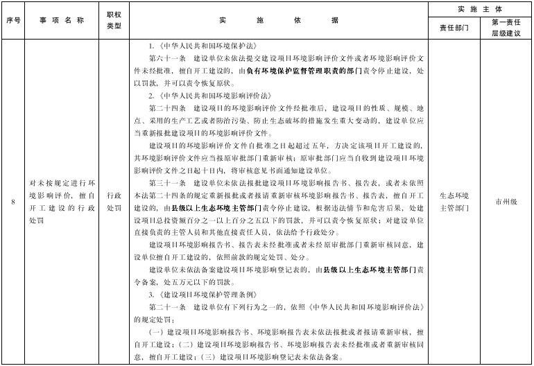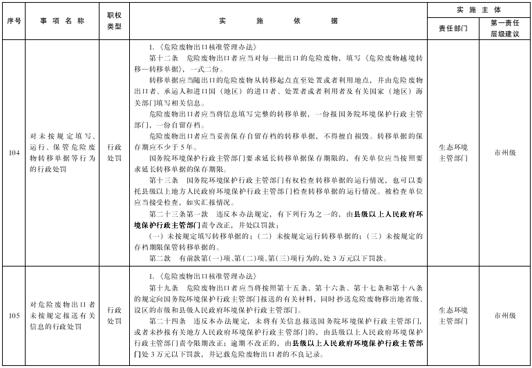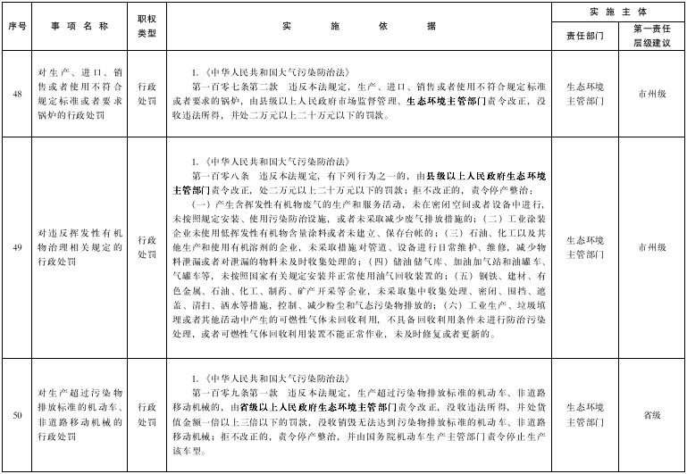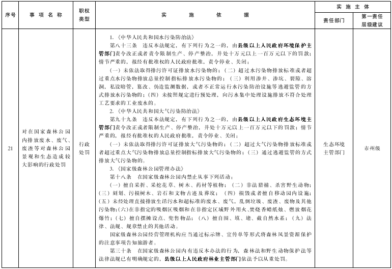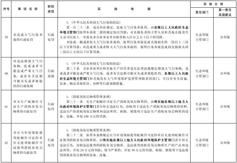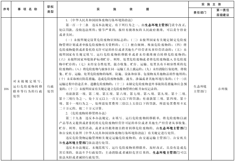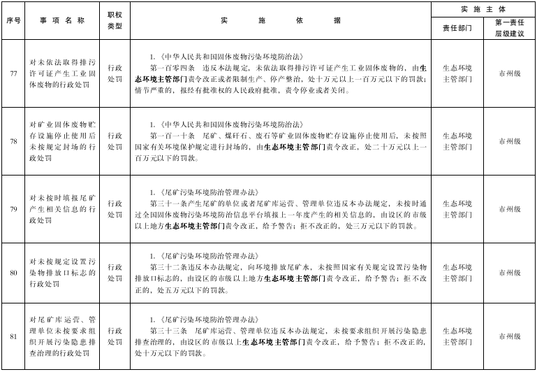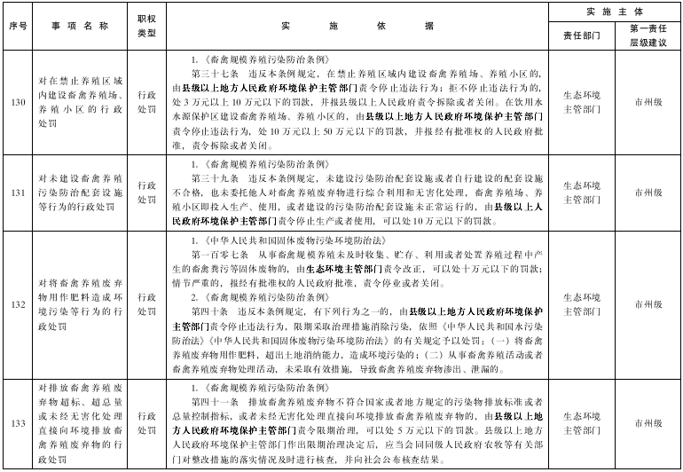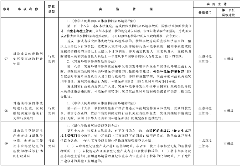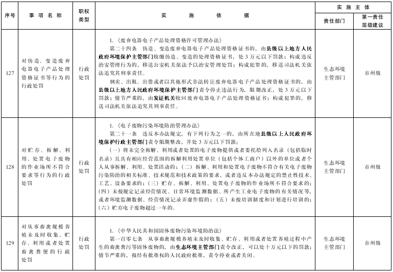 各地区各部门要按照党中央、国务院决策部署和省委、省政府工作要求,切实加强组织领导,对列入《指导目录》的行政执法事项,始终按照减少执法层级、推动执法力量下沉的要求,明晰第一责任,规范执法流程。要扎实推进生态环境保护综合行政执法改革,全面落实行政执法责任制,形成可量化的综合行政执法履职评估办法,作为统筹使用和优化配置编制资源的重要依据。省生态环境厅要加强对地方生态环境部门的业务指导,推动完善执法程序、严格执法责任、加强执法监督,不断优化生态环境执法方式,提高执法效能和依法行政水平。