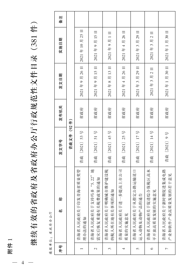 附件:1.继续有效的省政府及省政府办公厅行政规范性文件目录(381件)