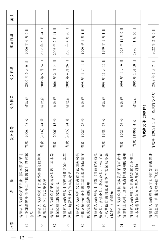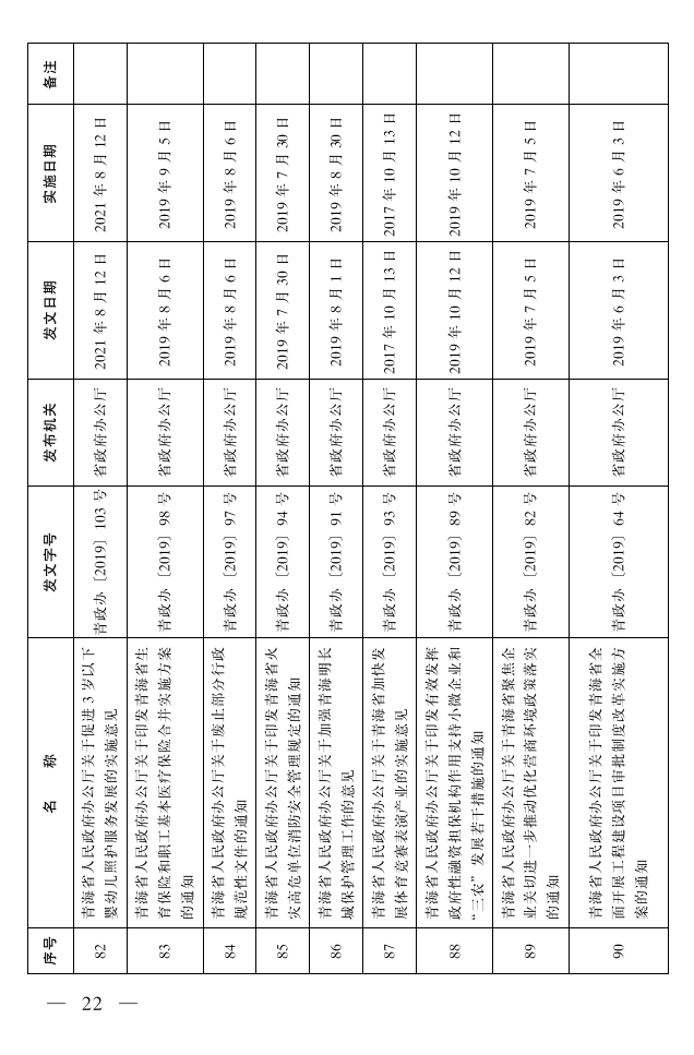 为深入推进依法行政,深化行政体制改革,加快建设法治政府,加强行政规范性文件的监督管理,根据《青海省行政规范性文件制定和备案办法》(世界杯哪里下赌注第99号令)的相关规定,省政府以2020年清理结果为基数,对2020年清理中继续有效的规范性文件,以及2020年7月1日至2022年6月30日两年来以省政府及省政府办公厅名义印发实施的规范性文件进行了清理,现将清理结果公布如下:
