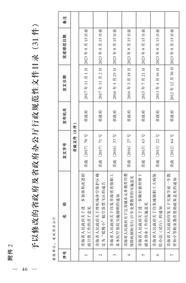 2.予以修改的省政府及省政府办公厅行政规范性文件目录(31件)