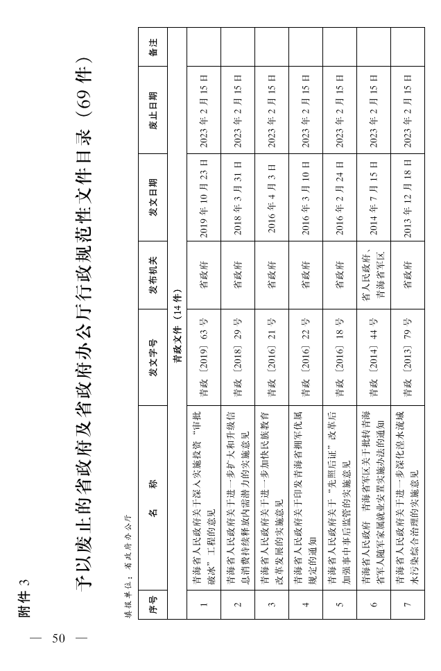 3.予以废止的省政府及省政府办公厅行政规范性文件目录(69件)