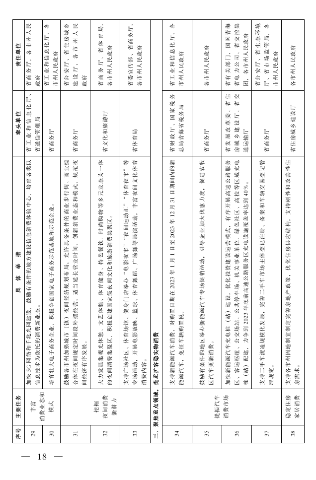 附件:《青海省促进消费持续恢复升级的若干措施》重点任务清单