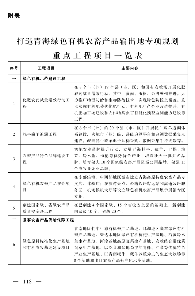 附表:打造青海绿色有机农畜产品输出地专项规划重点工程项目一览表