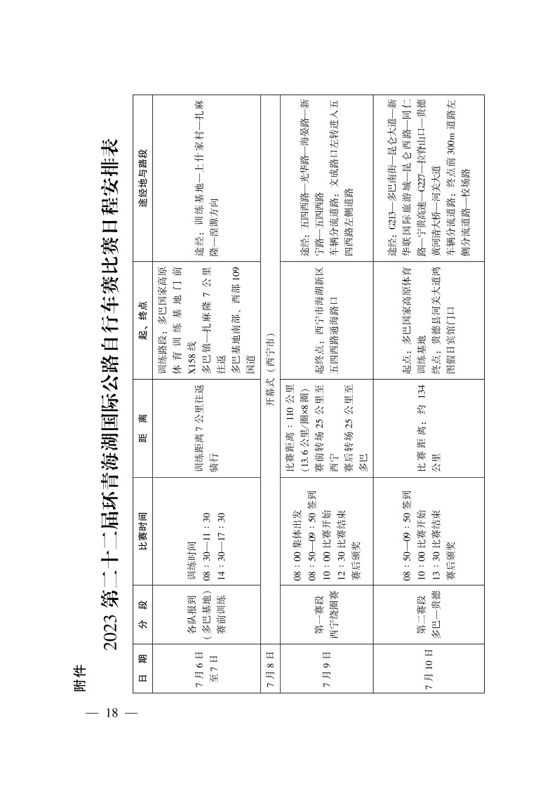 附件:2023第二十二届环青海湖国际公路自行车赛比赛日程安排表