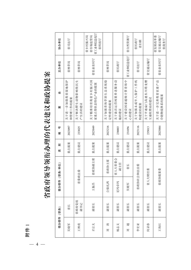 附件:1.省政府领导领衔办理的代表建议和政协提案