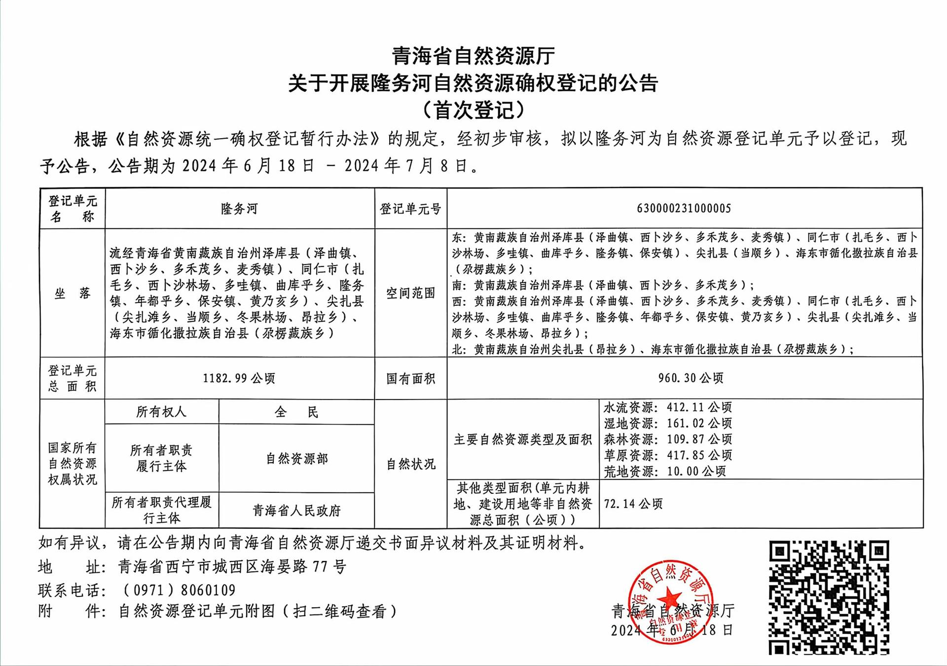 青海省自然资源厅关于开展隆务河自然资源确权登记的公告(首次登记).pdf