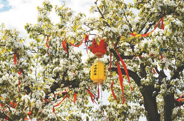我在桥头村邂逅了一棵梨树,是在转过好几个巷道才站到它面前的。那是一面二层楼高的土墙,墙由大板夯筑,墙体里还夹杂着秸秆和野草的碎屑,墙角种着一棵梨树,怕是年深日久了,树干比成人一抱还要粗。低处的花枝在这面黄褐的土墙上伸展,怎么看,都是一幅做旧的熟宣纸上的工笔画,那花瓣,就像是拿钛白调和水,细细染过。有风吹来,花朵竟在纸上轻颤,像在画里活了。树下,水渠流过,淙淙有声,还带走零落的花瓣。转一个身,隔着一小片玉米地(玉米苗还没有长高,陷在巴掌大的塑料薄膜里),是另一户人家的庄廓。依然是梨树,花枝蓬勃。我走近几步,一只狗从檐下窜出来,汪汪叫两声,扯得铁链子哗哗响,还弄翻了它的食盆。小院寂静,花下的木门紧闭,主人或许去村口看梨花节的演出了。牛棚里有牲口在吃草,瞪着一双大眼睛远远地望着我,棚子边上,是堆成了小山的劈柴,柴上还整齐地码放着去年秋天的玉米芯。