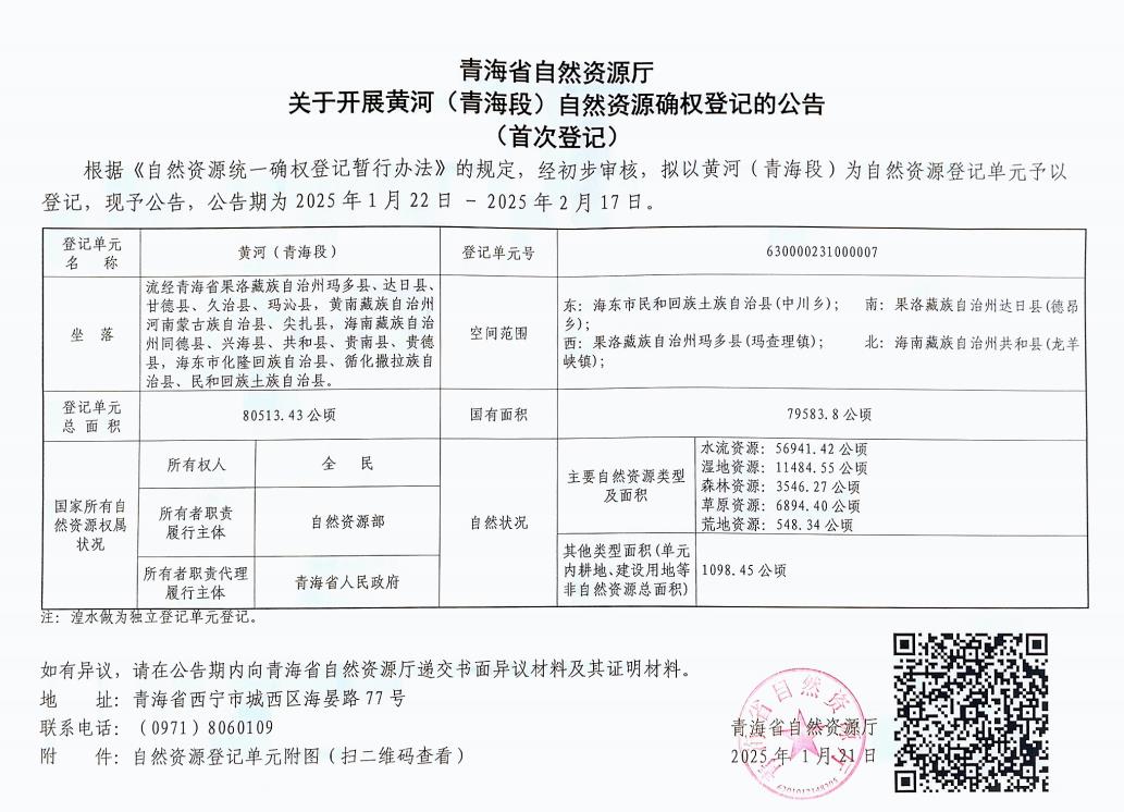 【市自然资源和规划局】青海省自然资源厅关于开展黄河(青海段)自然资源确权登记的公告(首次登记)