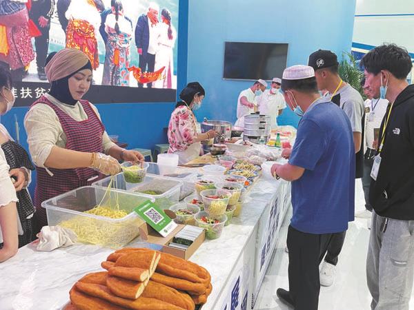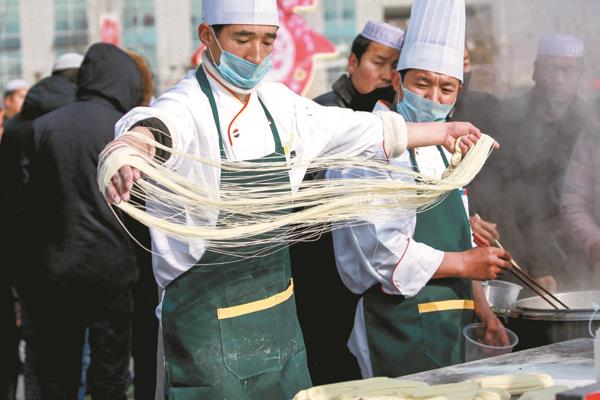 “我是从山东省滨州市过来的,也是第一次来青海,昨天就看见有人在朋友圈发在海东馆吃面,照片里的面条可诱人了,今天趁着不忙我们就赶紧过来品尝一下海东的拉面,味道确实比我们那里做得好吃。”在第22届中国·青海绿色发展投资贸易洽谈会上,连续五年走进青洽会的青海拉面产业,以全程不间断的互动方式,以现场生产、当场品尝的推介理念,从视觉冲击到征服舌尖,从静态展示到动态联动,从技能表演到满足胃口,再次成为展会“新宠”,在强势聚集人气的同时,客商合作意向强烈,秀出了拉面产业新魅力。