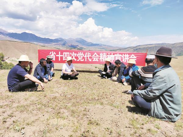 “今后五年全省的奋斗目标是:加快建设绿色发展的现代化新青海;加快建设生态友好的现代化新青海……”在具乎扎村撂荒地整治现场,党建指导员、镇党委书记张文正用朴实易懂的方言向全镇种植大户传达全省五年来的成就及今后五年的目标任务和工作部署,切实让省第十四次党代会精神在具乎扎村落地生根。
