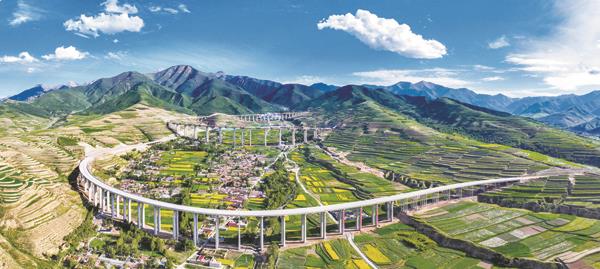 日前,随着最后一方混凝土的顺利浇筑,青海首座高速公路螺旋曲线桥—G213策克至磨憨公路乐都至化隆段斜沟5号特大桥双幅连续刚构施工顺利合龙,为该项目2024年实现通车目标奠定了坚实基础。据悉,斜沟5号特大桥是乐化高速项目重点控制性工程,桥长1378米,为典型的“大纵坡、高横坡、小半径”桥梁。图为青海省首座高速公路螺旋曲线桥全景。