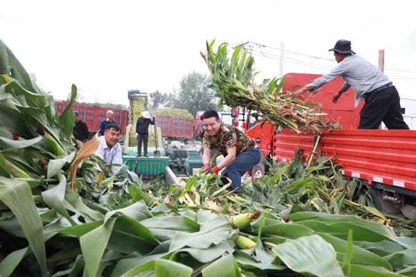 在巴州镇、古鄯镇、西沟乡等多个玉米秸秆收贮加工点,村民们拉着装满玉米秸秆的车辆正在等待售卖,脸上洋溢着收获的喜悦。