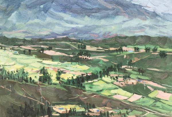 “斜阳照墟落,村巷牛羊归”,“看到沙索么村的第一眼,我的脑海里便浮现出这句诗”,领略过沙索么村之美的人经常会这么感慨,美院的师生也不例外,他们挥笔成画,创作了展现沙索么村之美的27幅油画作品。