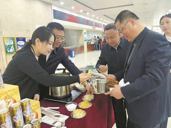 近日,联点隆治乡的县领导、县人大常委会党组副书记、副主任吕建青率领以隆治乡党委书记、乡长带队的农产品推介代表团,为隆治农产品叫卖,为乡村振兴寻找产业订单。在无锡市滨湖区机关食堂,软儿梨、软梨汁、苹果、土豆、人参果、牛羊肉等隆治乡的农产品陈列在展销台上,吸引不少来食堂就餐的干部职工品尝购买。看到有客人走来,吕建青和隆治乡党委书记王承树、乡长王燕以展销服务员的身份迎上去,为客人盛上要品尝的牛羊肉、焪土豆。“吃完牛羊肉,可以尝尝我们的软梨汁,非常清爽可口的!”吕建青现场拉客,认真聆听客人品尝后的反馈意见。