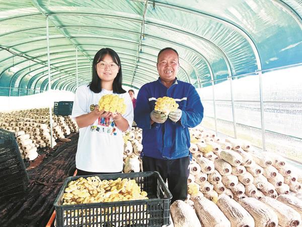 走进三合村的种植大棚,一股清新的菌香深入鼻息,榆黄菇嫩黄的朵朵“小伞”开满了整个菇棚,像一座座宝塔矗立棚内,十分惹人喜爱。棚内,只见几位村民娴熟地将榆黄菇采摘、分拣、加工、称重、装运……