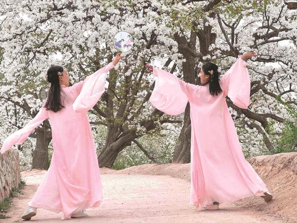 “汉服是我从网上买来的,发型是今早找发型师做的,梨花配汉服,肯定很古典唯美。”身着一身蓝色汉服的李华温柔地说道。说完,李华和同伴的身影便在一棵棵梨树的吸引下渐行渐远。