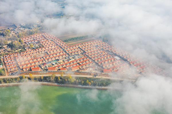 站在金田、草滩灾后重建搬迁新村的感恩广场上,一面鲜红的五星红旗在尚未散尽的晨雾中迎风招展。放眼看去,土黄色墙体、橙红色瓦面的庄廓小院新颖别致、错落有序,柏油铺就的村间巷道宛如一条黑丝带,连接着家家户户的小院,回迁装修的人们已经开始了新一天的忙碌。
