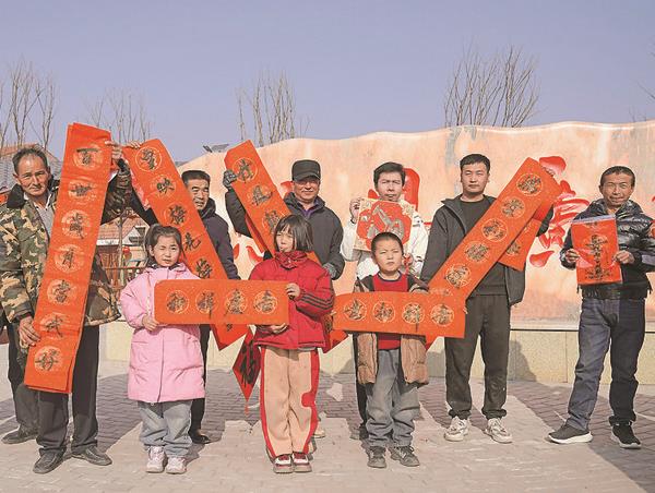 在文艺汇演的同时,送春联活动也在火热进行。一张张红纸铺展在桌上,墨香四溢,书法家们饱含热情,挥毫泼墨。他们根据村民的需求,将新春祝福融入字里行间,一副副饱含新春祝福和美好愿景的春联和“福”字跃然眼前。这些春联不仅字迹工整、寓意深远,更蕴含着书法家们对村民们的美好祝愿。