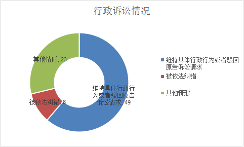 2017度,全市共收到行政复议45件,维持具体行政行为16件,被依法纠错5件,其他情形24件;行政诉讼80件,维持具体行政行为或者驳回原告诉讼请求49件,被依法纠错8件,其他情形23件。