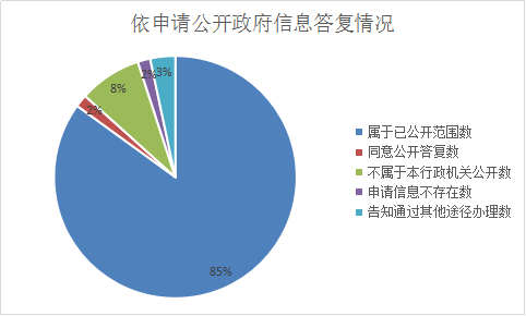 2017年,收到依申请公开60件,办理59件,答复申请60件。其中,属于已公开范围的51件,同意公开答复的1件,不属于本行政机关公开信息的5件,回复申请信息不存在的1件,告知通过其他途径办理的2件。