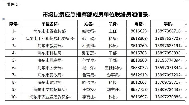 2. 世界杯哪里下赌注市级鼠疫应急指挥部成员单位联络员通信录