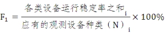 (1)观测设备运行稳定率F1。是指县区级气象部门所开展的各类气象观测设备和气象信息网络系统运行稳定率。依据《综合气象观测系统仪器装备运行状况通报办法》和气象信息网络系统运行有关技术规定进行考核。