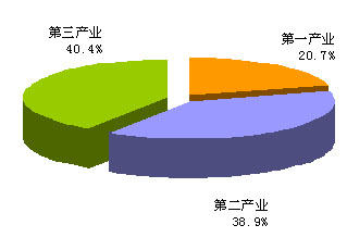三次产业结构继续保持三二一格局,但一产和二产略有上升,占比分别上升2.2、2.4个百分点,三产占比下降4.6个百分点,产业结构由上年的18.5:36.5:45转变为今年的20.7:38.9:40.4。